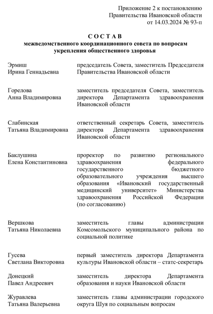 Губернатор Ивановской области Станислав Воскресеснкий 14 марта 2024 года подписал постановление правительства региона «О создании межведомственного координационного совета по вопросам укрепления общественного здоровья на территории Ивановской области».