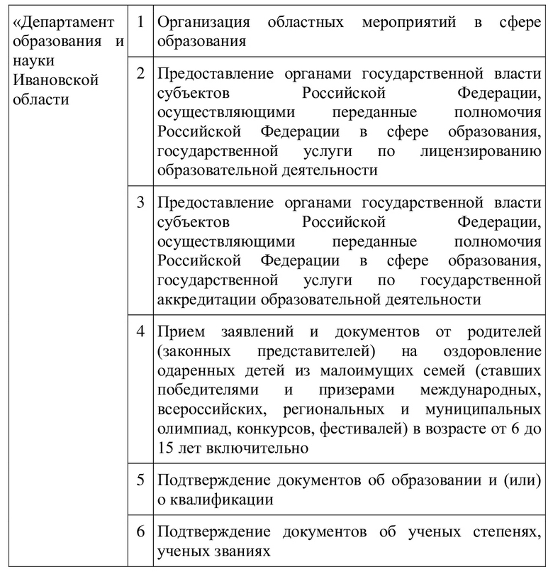 В частности, серьезно трансформирован подраздел «Департамент образования Ивановской области». Теперь список госуслуг ведомства выглядит так: