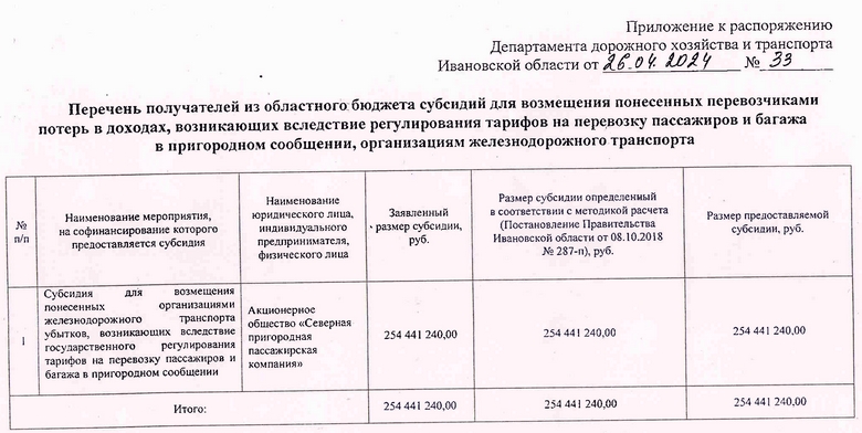 Теперь АО «СППК» причитается субсидия из бюджета Ивановской области объемом ни много, ни мало – 254 441 240 рублей.