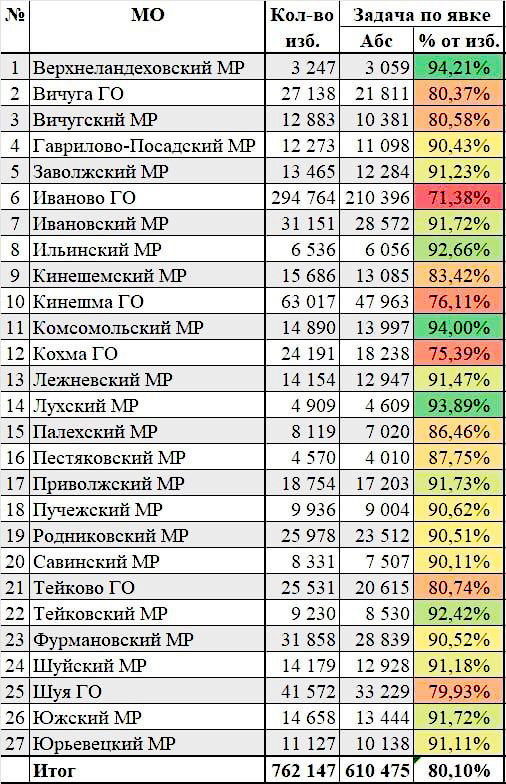 Не знаю, что двигало Евгением Леонидовичем, когда он на прошлой неделе собрал очередной шабаш – ой, предвыборный штаб – с муниципальными руководителями и в обстановке строжайшей секретности рассказал им, какая у кого должна быть явка. Вот эти цифры – на табличке-задании, подготовленной Нестеровым для глав.