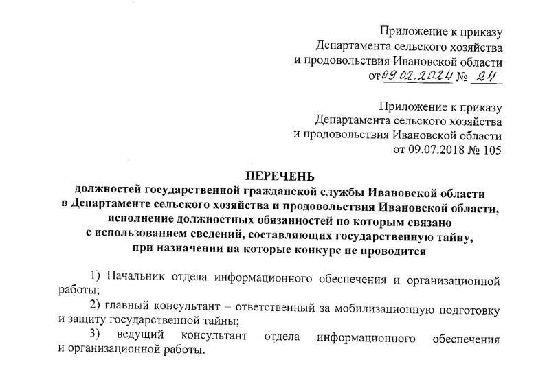 На сегодняшний день Автор: Александр Элькинд 9 февраля 2024 года департамент сельского хозяйства и продовольствия Ивановской области вслед за дорожно-транспортным департаментом актуализировал перечень должностей госуда