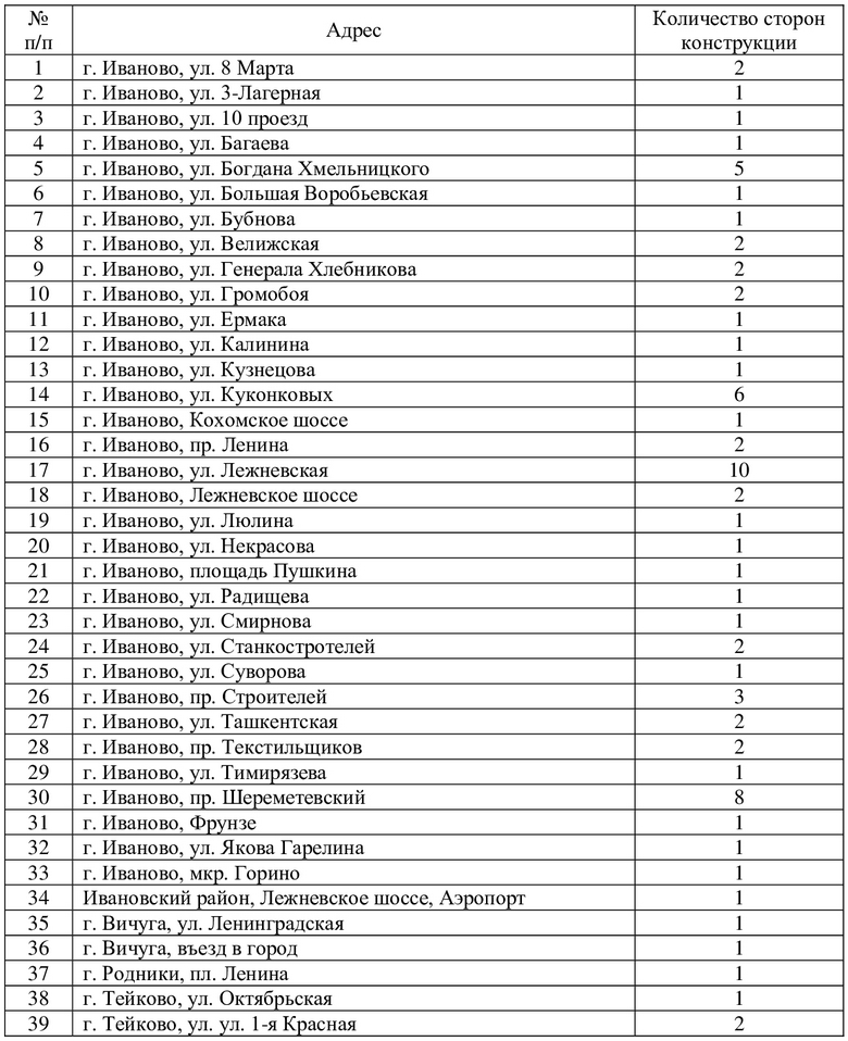 Размещение баннеров должно осуществляться на рекламных конструкциях, находящихся в пределах видимости с автомобильной дороги следующих улиц: