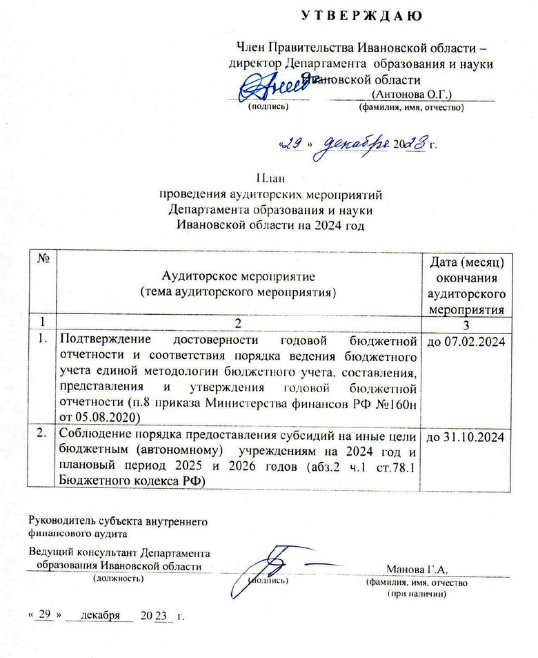 Департамент образования и науки Ивановской области на днях выложил в открытом доступе внутренний план проведения аудиторских мероприятий на 2024 год, утвержденный перед новогодними праздниками.