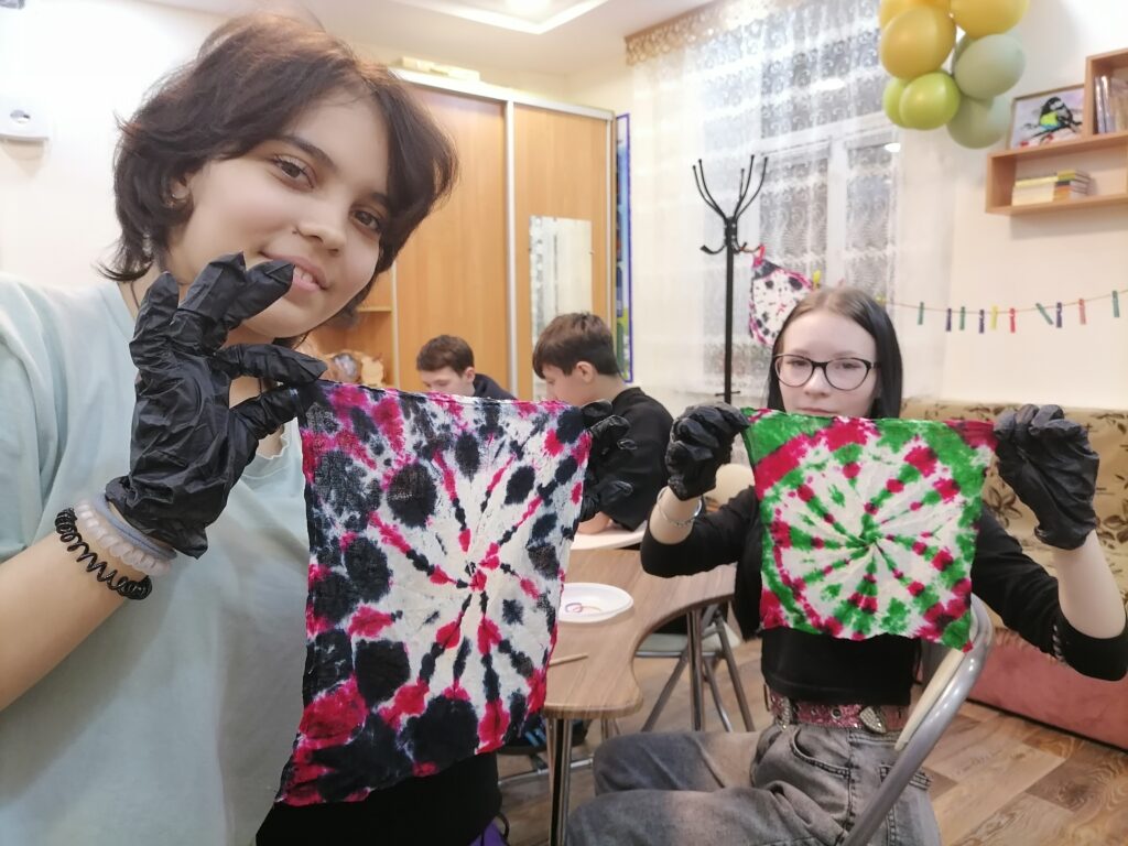 В рамках реализации программы «Юный художник» для воспитанников детского дома был проведён мастер-класс в технике «Тай-дай».