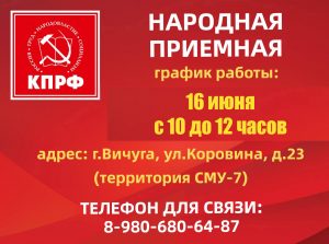 16 июня в помещении Вичугского горкома КПРФ (контактная информация на фото) проведет прием депутат Вичугской городской Думы Коровин А.Г.
