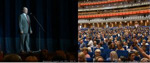 — Дорогие товарищи и друзья. В главном зале страны мы сегодня проводим вечер, посвященный 225-й годовщине со Дня Рождения Александра Сергеевича Пушкина.
