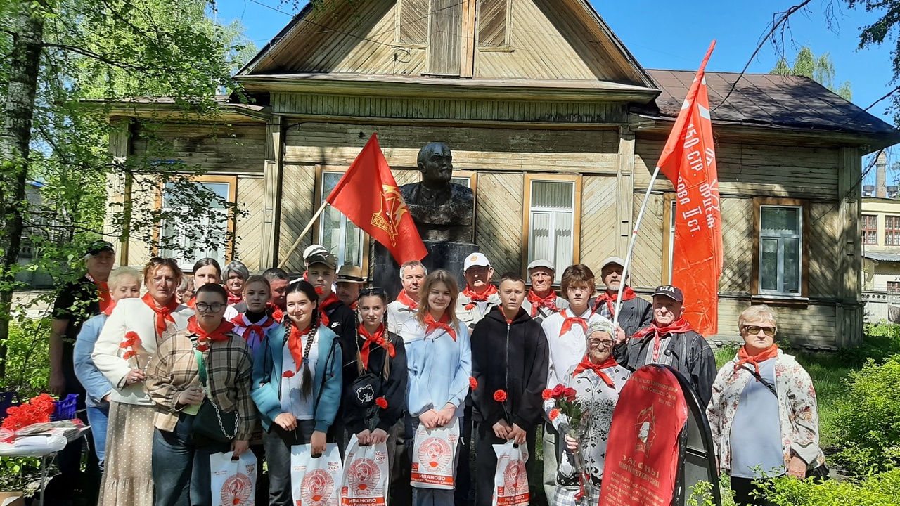 После исполнения гимна советской пионерии «Взвейтесь кострами, синие ночи…» у памятника В.И.Ленину началась торжественная линейка, которую вела Тихомирова Светлана Александровна (секретарь горкома КПРФ).