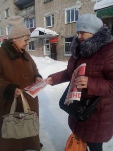 9 февраля активисты вышли на улицу Мира города Заволжск, где вручали бюллетень всем прохожим, при этом рассказывая о его содержании и отвечая на вопросы заволжан.