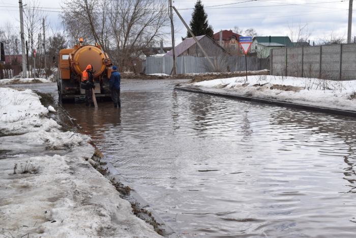 С территорий общего пользования, не оборудованных ливневой канализацией, продолжается откачка талых вод. В работах задействованы три илососные машины и одна каналопромывочная. При необходимости МКУ может быть задействована дополнительная спецтехника сторонних организаций, всего до десяти единиц.