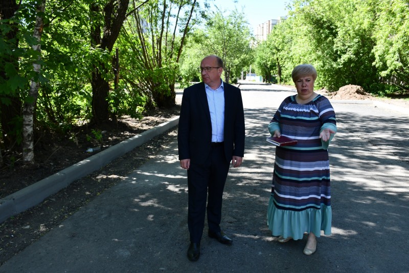 Председатель Ивановской городской Думы Александр Кузьмичев вместе с помощником в рамках рабочего выезда обсудили с жителями волнующие их вопросы по ремонту дороги и тротуаров по переулку Слесарный.