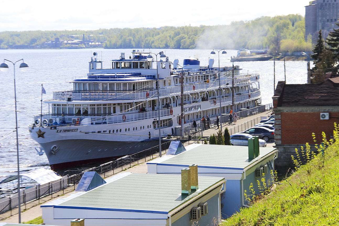 В воскресенье, 28 апреля, сразу два теплохода пришвартовались в Кинешме и Юрьевце — трехпалубник «К.А. Тимирязев» круизной компании «Белый лебедь» и комфортабельный