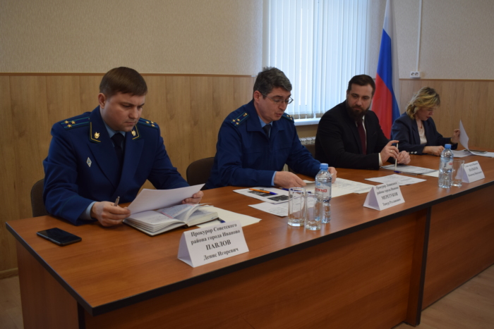 В межведомственном совещании приняли участие глава города Иванова Владимир Шарыпов, прокурор Ленинского района города Иваново Тимур Меретуков, прокурор Советского района города Иваново Денис Павлов,